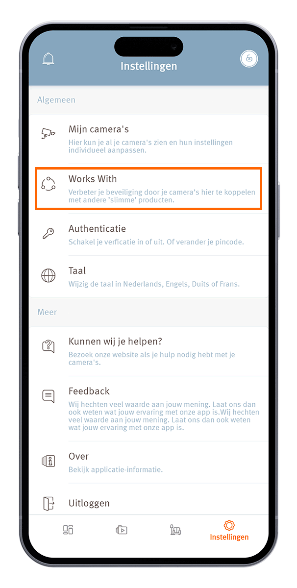 - Log in in de Beveiligingscamera App en ga naar ‘Instellingen’